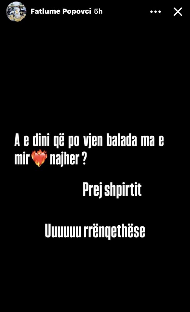 “A e dini që po vjen balada ma e mirë najher? Prej shpirtit… rrënqethëse”, ka shkruar ajo, duke lënë të kuptohet se projekti i ri muzikor do të jetë plot emocione dhe ndjenjë.