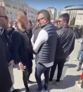 Sot në Shkup po zhvillohet një protestë e organizuar nga studentët, ku po diskutohet për çështje të arsimit dhe të drejtave të studentëve. Gjatë protestës, disa nga pjesëmarrësit nuk e lejuan Arbër Ademin nga BDI-ja të qëndrojë në rreshtin e parë të studentëve, duke e detyruar të qëndrojë më pas në pjesën e masës së protestuesve.