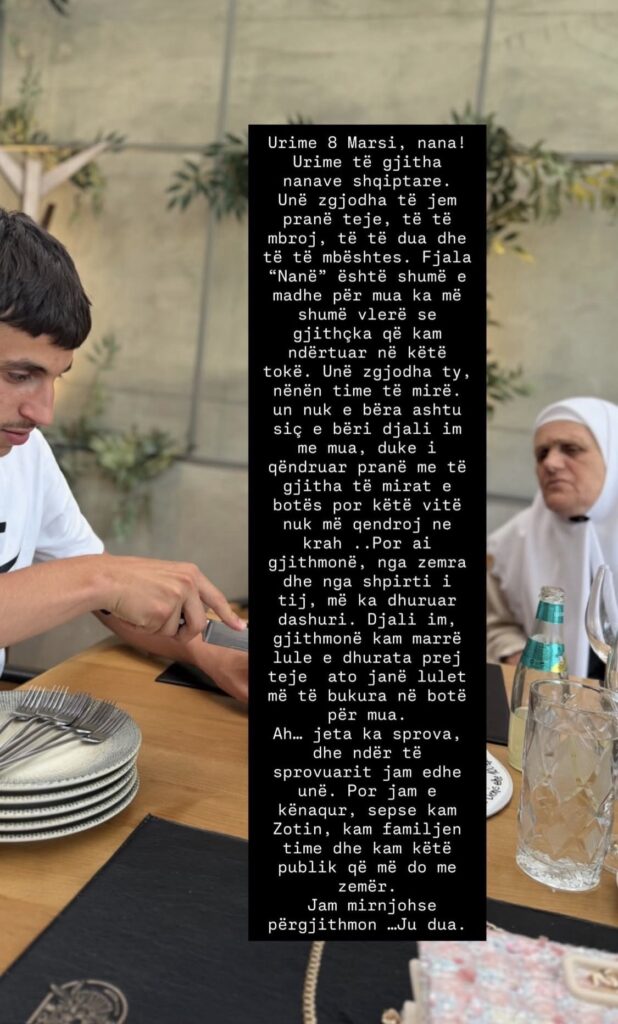 Mesazhi i saj përfundon me një falënderim të sinqertë për familjen dhe publikun që e mbështet, duke shprehur mirënjohje dhe dashuri për të gjithë.
